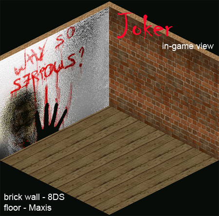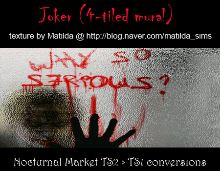 3) One lovely lady, who you know as Matilda - creator of most beautifull walls and floors for Sims 2, generously given me a permission to convert her creations and here is the first set - 4-tiled Joker mural: